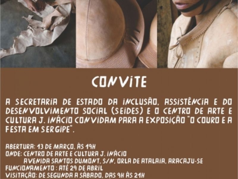 O Centro de Arte e Cultura J. Inácio, localizado na Orla de Atalaia, inaugura às 19h da próxima terça-feira, 13, a exposição “O Couro e a Festa em Sergipe”. O evento conta com o apoio da Secretaria de Estado da Inclusão, Assistência e do Desenvolvimento Social (Seides) e da Secretaria de Estado da Cultura, e ficará aberto ao público até 29 de abril.