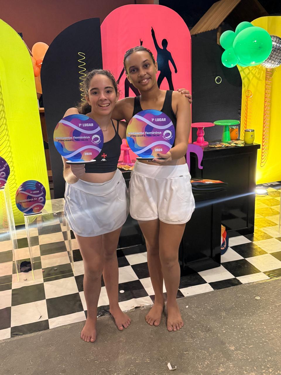 A dupla participou da competição enfrentando adversárias de diferentes cidades da região. Mesmo com pouca idade, as jovens demonstraram grande habilidade, entrosamento e determinação dentro de quadra, garantindo bons resultados ao longo de toda a disputa.