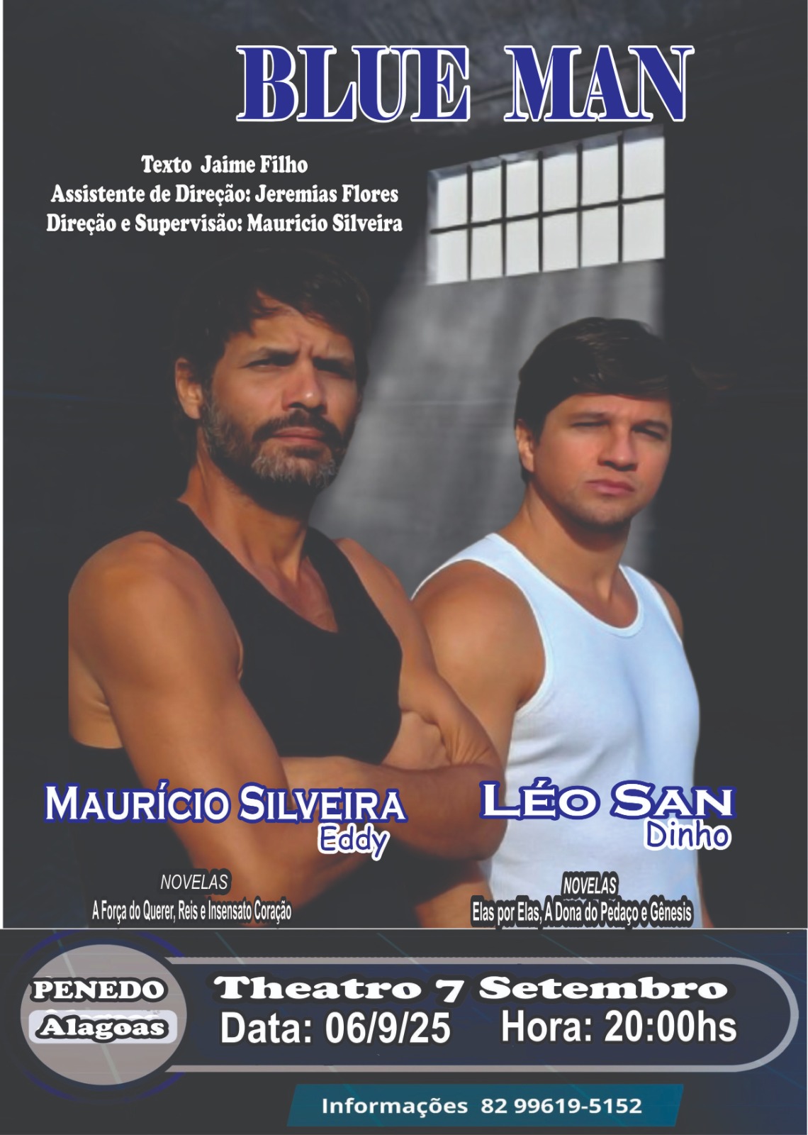 A peça “Blue Man”, que tem o texto assinado por Jaime Filho, será encenada a partir das 20 horas e reúne uma combinação envolvente de drama e humor, abordando temas contemporâneos com sensibilidade e leveza.