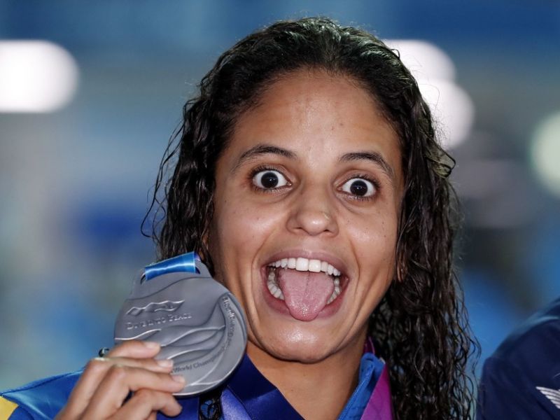 Etiene, Etiene e Etiene. Pela terceira vez seguida, a brasileira Etiene Medeiros foi ao pódio na prova dos 50m costas do Campeonato Mundial de natação. Em Gwangju, na Coreia do Sul, ela ficou com a medalha de prata, mesma conquista que teve em Kazan, na Rússia, em 2015. Em 2017, na Hungria, tinha sido a campeã. O ouro ficou com a americana Olivia Smoliga, vice-campeã olímpica dos 100m, que anotou 27s33. Etiene ficou com 27s44, com a prata. O bronze foi para a russa Daria Vaskina, que fez 27s51.