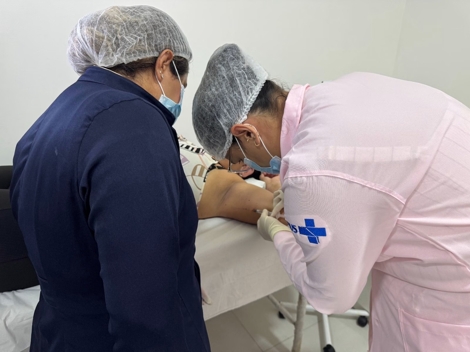 Nathalya apresentou a técnica correta de inserção do Implanon, utilizando uma prótese. Em seguida, as enfermeiras da SMS realizaram a aplicação em pacientes, sempre sob a supervisão da instrutora, garantindo segurança e qualidade no procedimento.