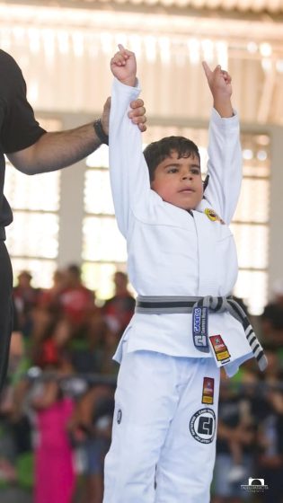 O penedense Murillo, de seis anos, voltou a ser destaque no jiu-jitsu. Recentemente, o “Guerreiro Murillo”, como é conhecido, venceu a 3ª etapa da Liga Alagoana de Jiu-jitsu e assumiu o primeiro lugar no ranking estadual de 2025.
