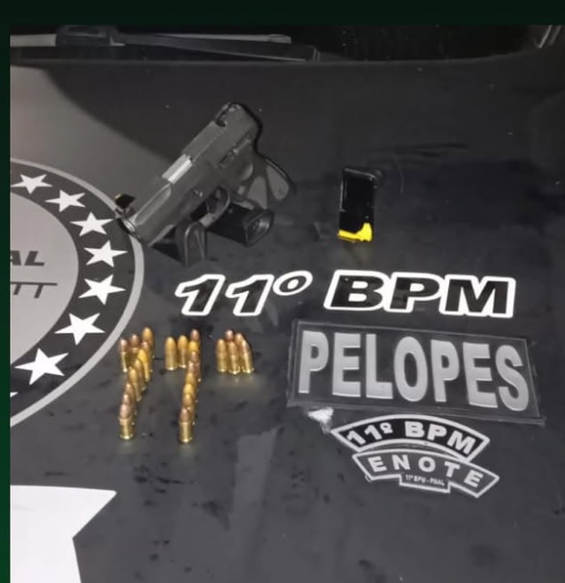 Guarnições do Pelotão de Operações Especiais (PELOPES) I e II atenderam a uma ocorrência de perturbação do sossego em Penedo e flagraram um homem tentando esconder uma pistola ao perceber a chegada da polícia.