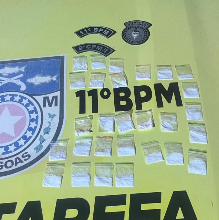 Durante patrulhamento tático na noite deste sábado, 31, nas imediações da festa de emancipação da cidade de Piaçabuçu, nas proximidades da beira do rio, a guarnição da Força Tarefa (FT Enote) do 11º Batalhão da Polícia Militar abordou um homem em atitude suspeita e flagrou com ele 28 papelotes de uma substância análoga à cocaína.