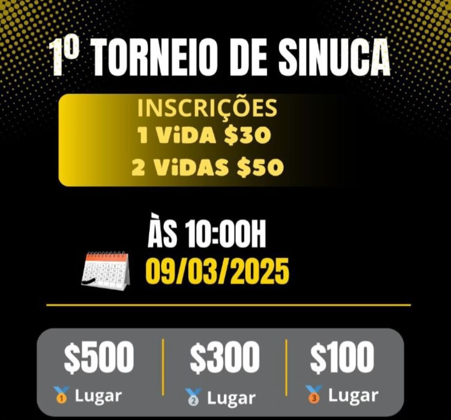 O 1º Torneio de Sinuca acontecerá no dia 09 de março, às 10 horas, na sede dos Unidos do Bairro, localizada no bairro Santa Luzia, parte alta de Penedo. O evento promete reunir jogadores e amantes da sinuca para uma competição na modalidade bolinho.
