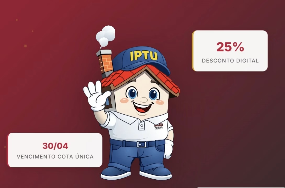 A Prefeitura de Penedo lança o IPTU 2026 com condições especiais de desconto. O grande destaque é a economia real de 25% no valor total do imposto para o contribuinte que optar pelo pagamento da cota única por meio digital.