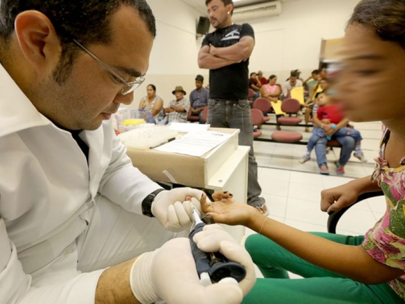Coleta do material genético durante mutirão da paternidade em União dos Palmares.