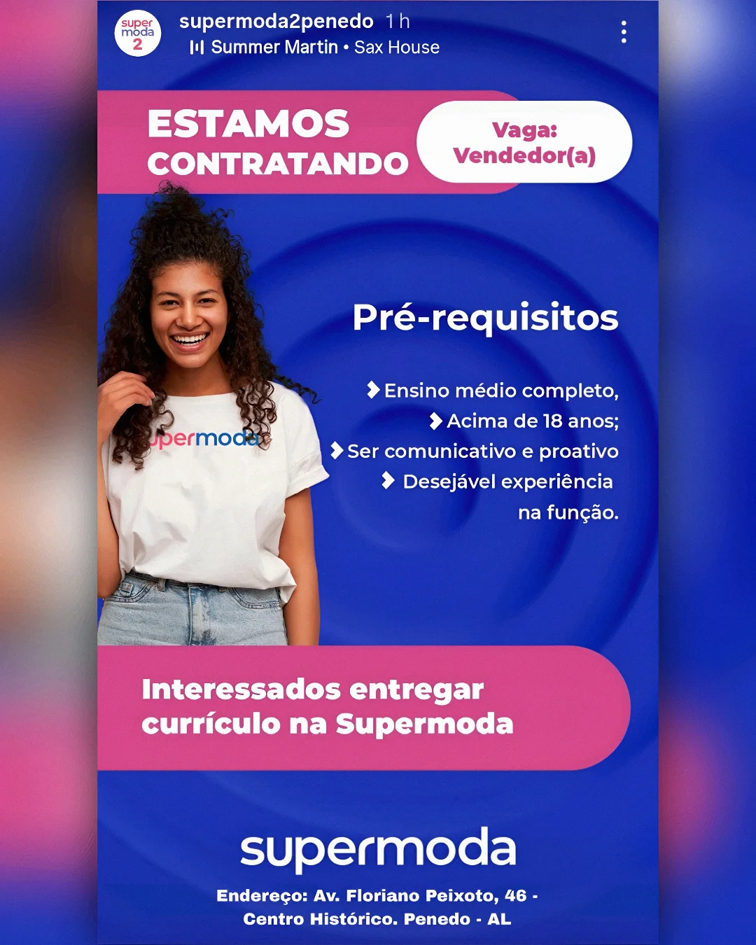 Se você está em busca de uma oportunidade para entrar no mercado de trabalho e começar o ano com o pé direito, fique atenta para não perder essa chance. A loja Supermoda, localizada no Centro de Penedo, abriu processo seletivo para a função de vendedora.