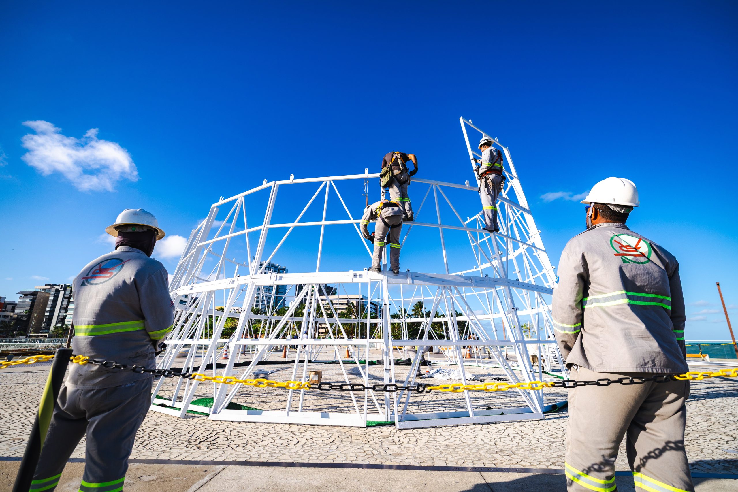 A Prefeitura de Maceió, através da Autarquia Municipal de Iluminação Pública (Ilumina), iniciou, na tarde dessa terça-feira(4), a montagem da tradicional Árvore da Natal. Com 34 metros de altura, o maior símbolo natalino da capital está sendo erguido no Marco dos Corais, na orla da Ponta Verde.