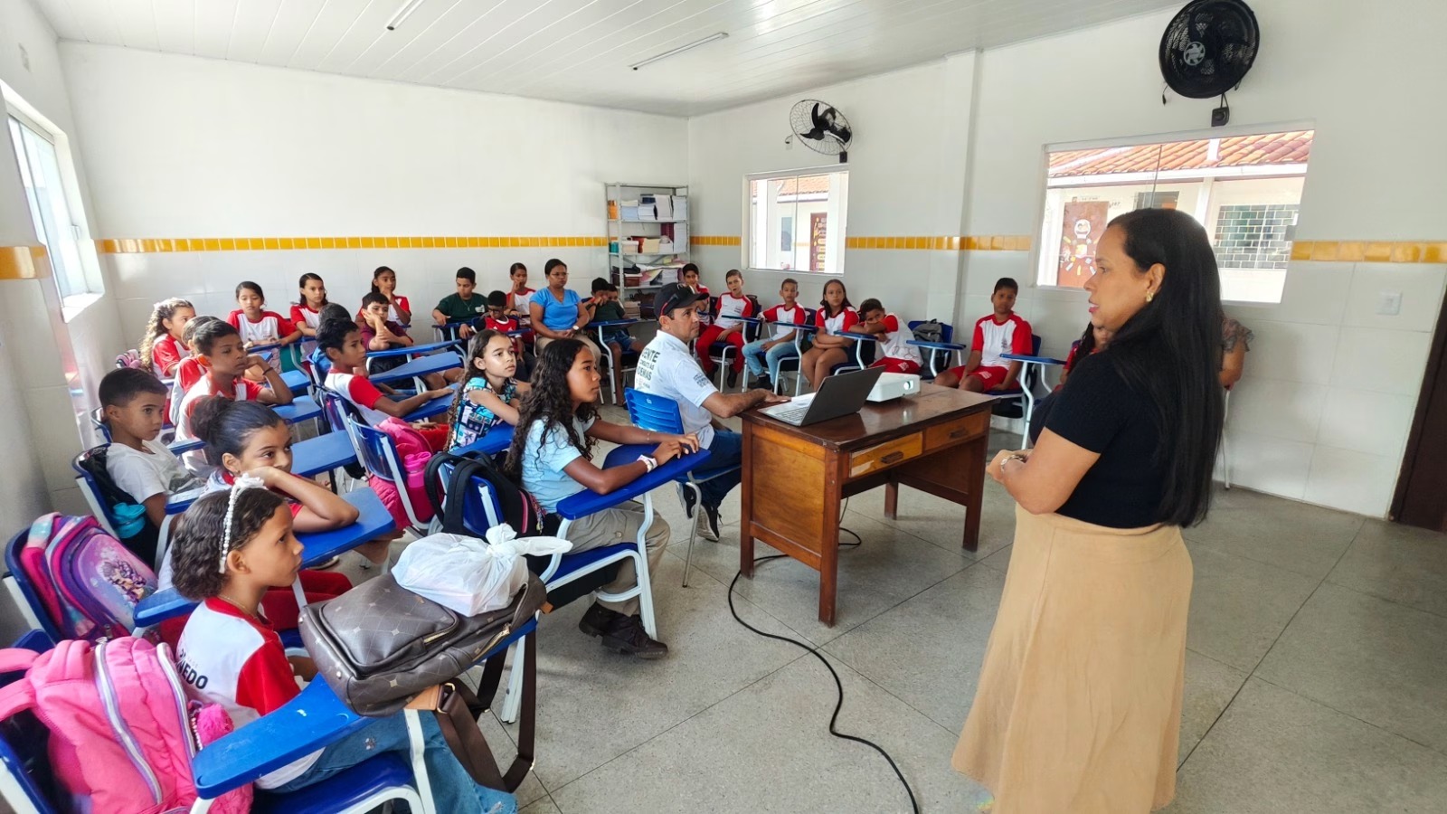Durante a visita da equipe da Vigilância Epidemiológica da SMS, os estudantes do 4º e 5º ano participaram de palestras educativas que abordaram temas como os cuidados necessários com os animais de estimação, a responsabilidade de ter um pet e a importância de garantir alimentação adequada, higiene, vacinação e acompanhamento veterinário.