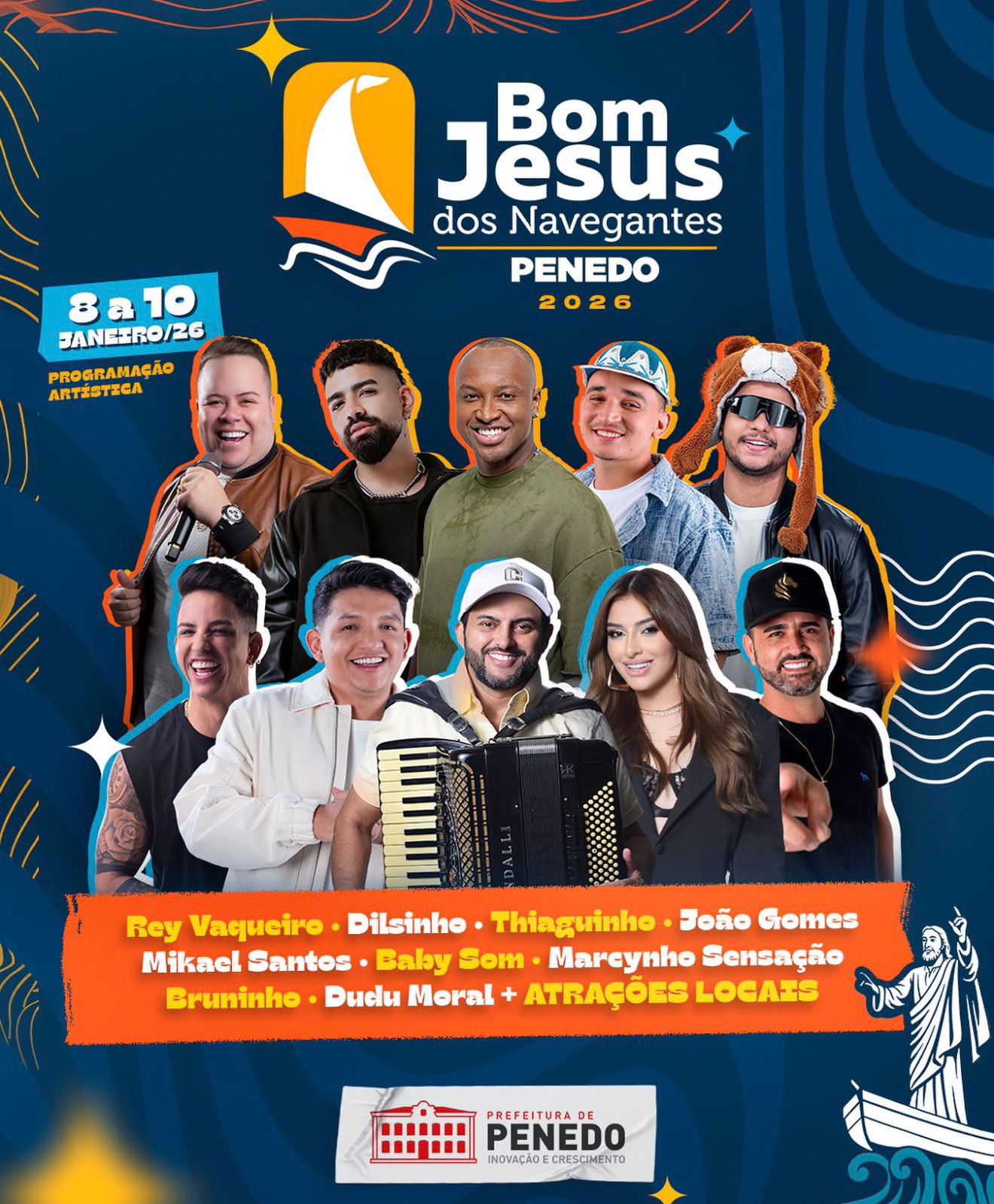 A tradicional Festa de Bom Jesus dos Navegantes de Penedo teve sua programação artística oficialmente divulgada na manhã desta terça-feira, 18 de novembro, reunindo grandes nomes da música nacional e atrações regionais que prometem agitar o público durante os dias de celebração.