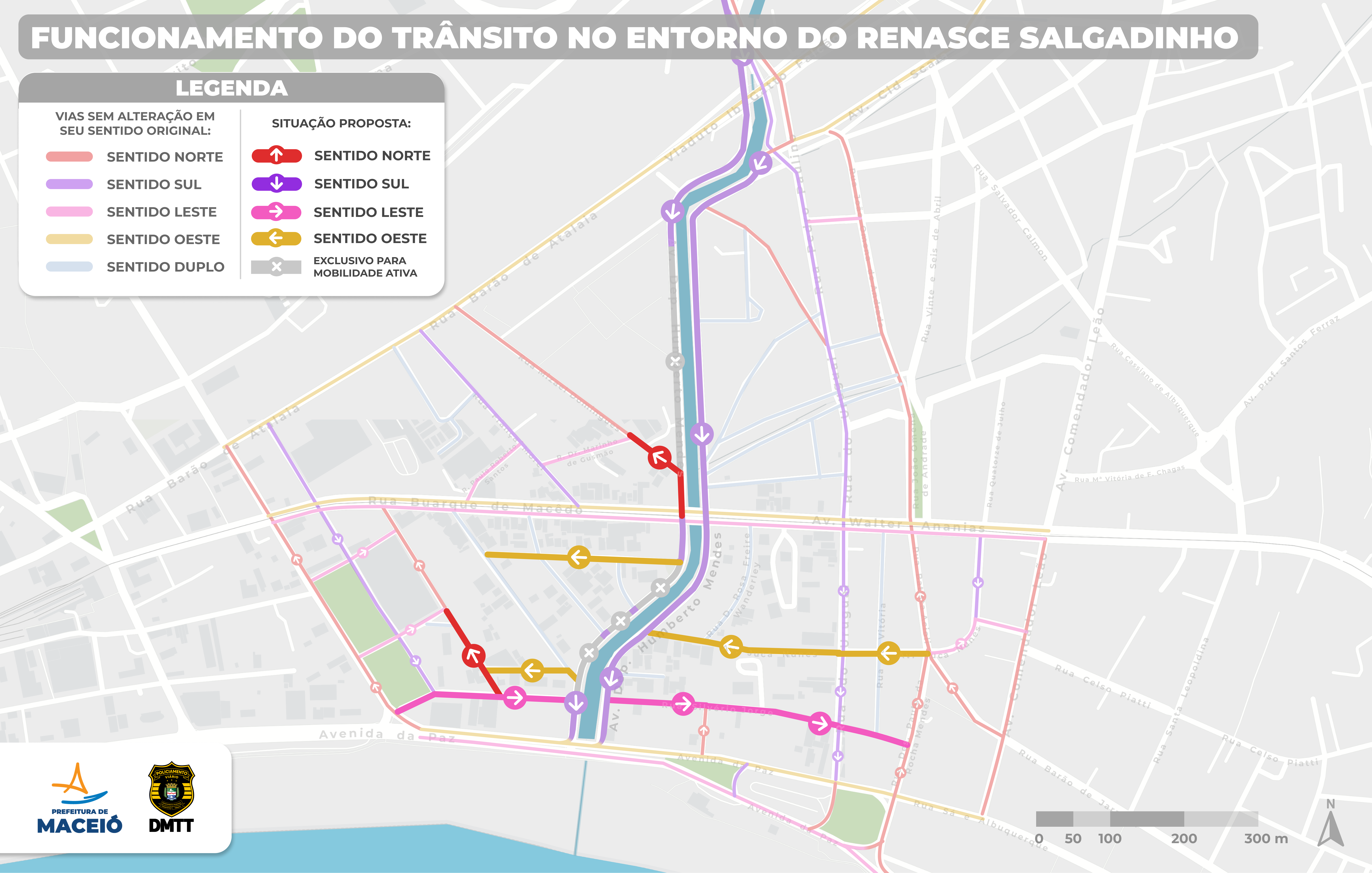 Para o trânsito local, serão preservados os acessos pela Avenida Walter Ananias para a Rua Mizael Rodrigues (PAM Salgadinho-sentido Barão de Atalaia), que funcionará em esquema de binário com a Rua França Morel (sentido Rua Buarque de Macedo).
