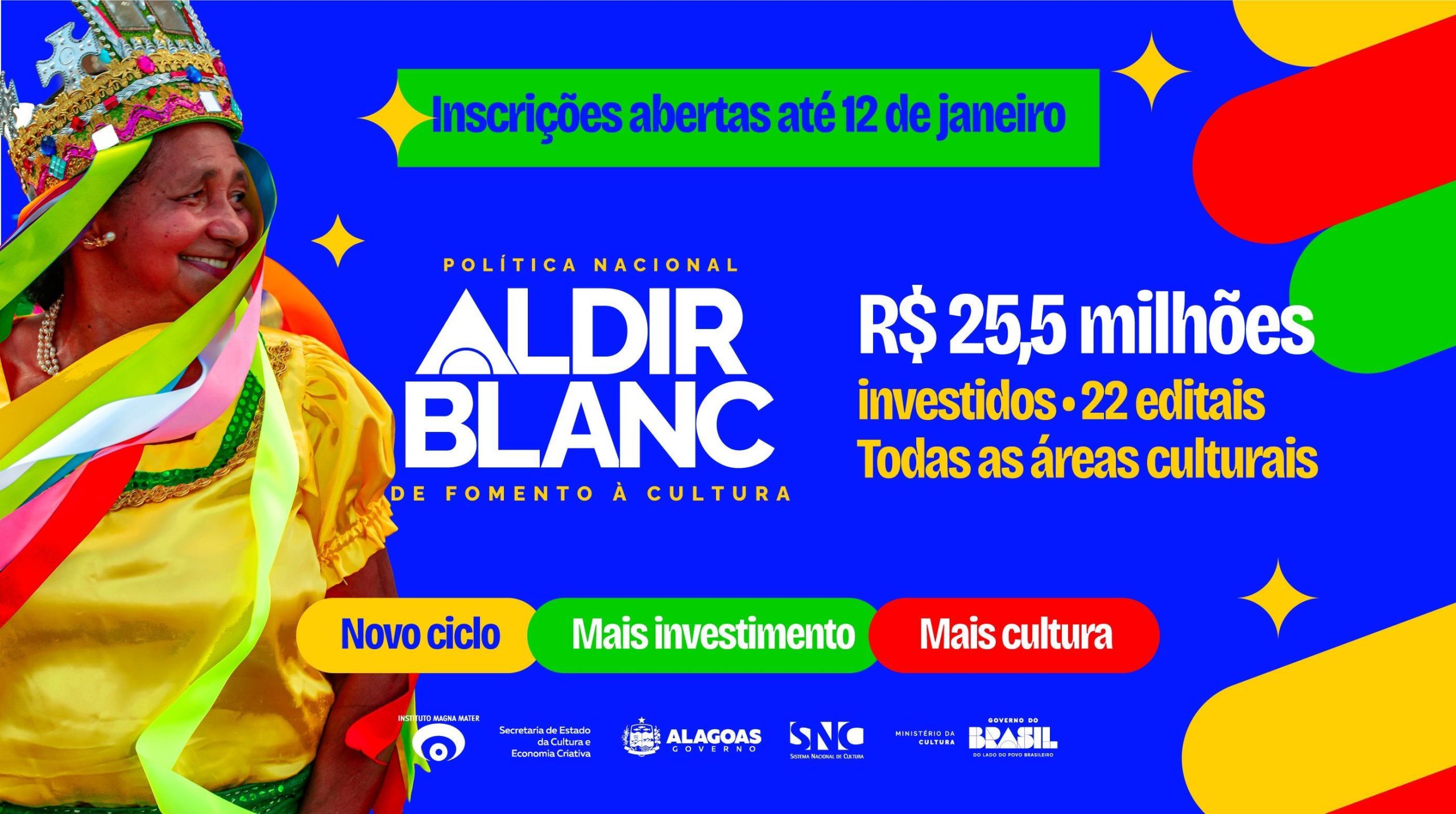 As inscrições para os 22 editais do Ciclo 2 da PNAB em Alagoas já estão abertas e seguem até o dia 12 de janeiro. Os certames representam um novo investimento voltado ao fortalecimento da cultura alagoana, contemplando diferentes linguagens, territórios e perfis de agentes culturais.