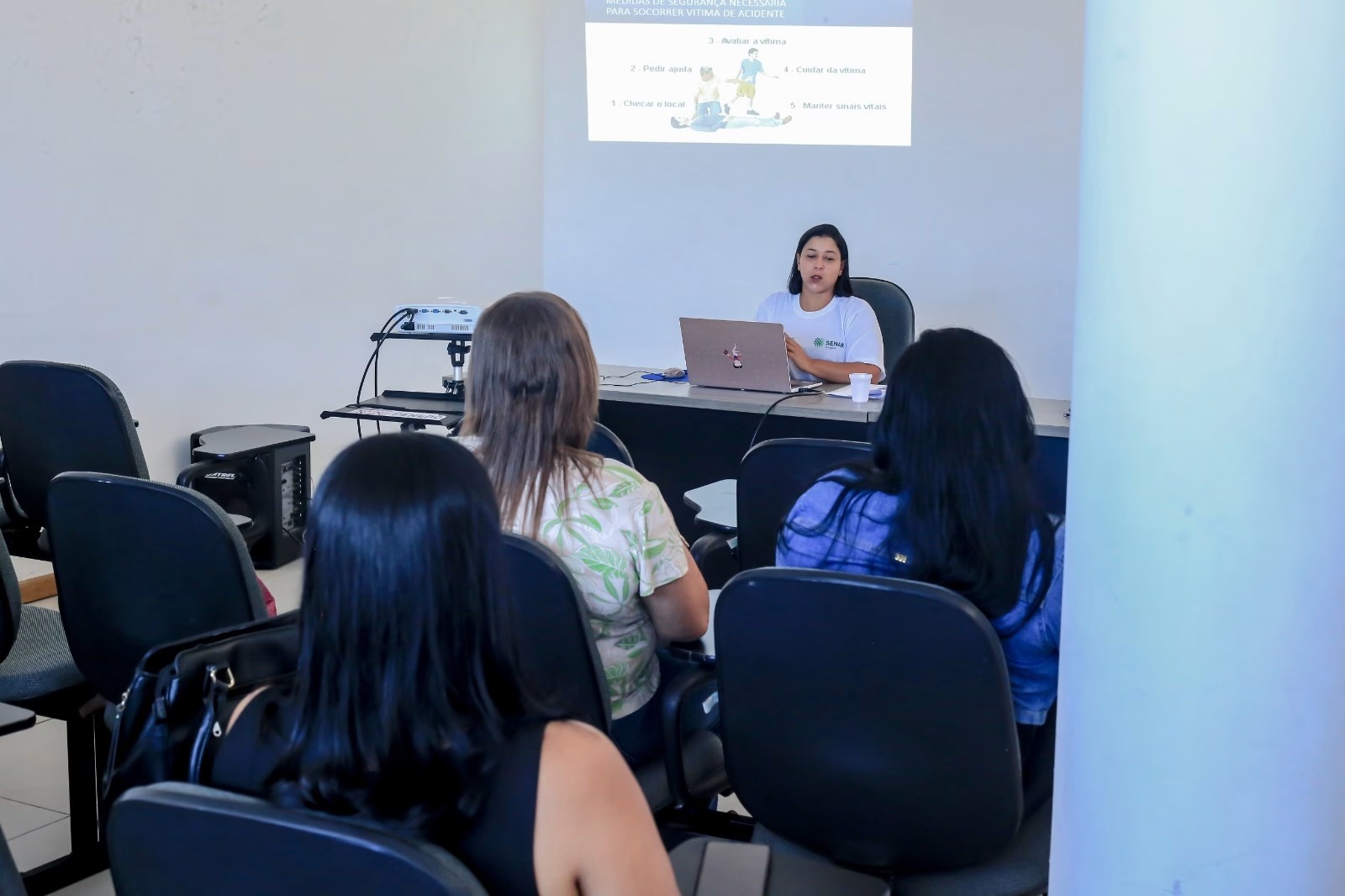 “Nestes dias, os servidores participarão do curso básico de Primeiros Socorros destinado aos trabalhadores. O objetivo é que os participantes possam minimizar os riscos e danos em casos de acidentes no ambiente de trabalho. No cronograma de estudos, abordaremos a importância dos Primeiros Socorros, as técnicas básicas de RCP (Ressuscitação Cardiopulmonar) e como realizar a manobra corretamente. Também trataremos de temas como queimaduras, ferimentos, traumas e transporte de vítimas”, explicou a enfermeira e instrutora do Senar, Ítala Marina.