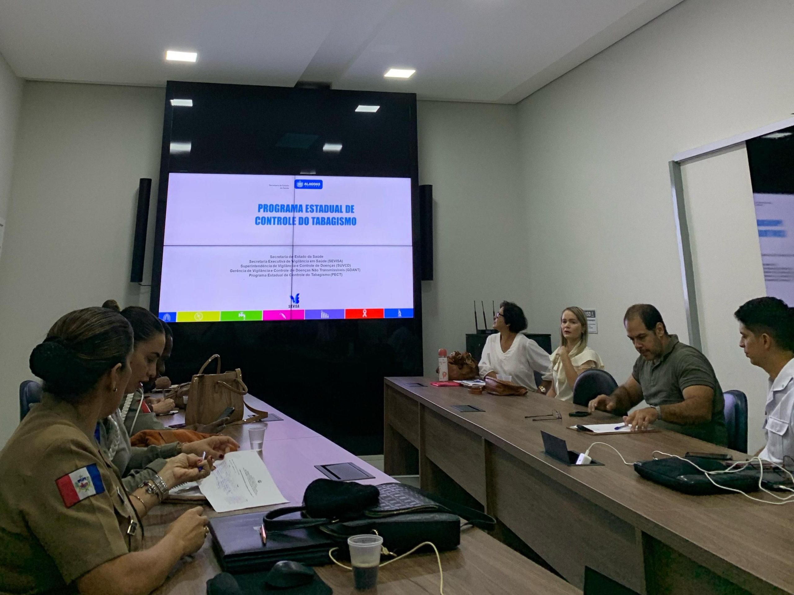 A Secretaria de Estado da Saúde (Sesau) realizou na manhã desta quarta-feira (27) uma reunião com representantes da Secretaria de Segurança Pública (SSP) e de outros órgãos para compartilhar informações sobre o programa de controle do tabagismo em Alagoas. A iniciativa faz parte da formação de um grupo interinstitucional que visa fortalecer as ações de prevenção e tratamento do tabagismo no estado.