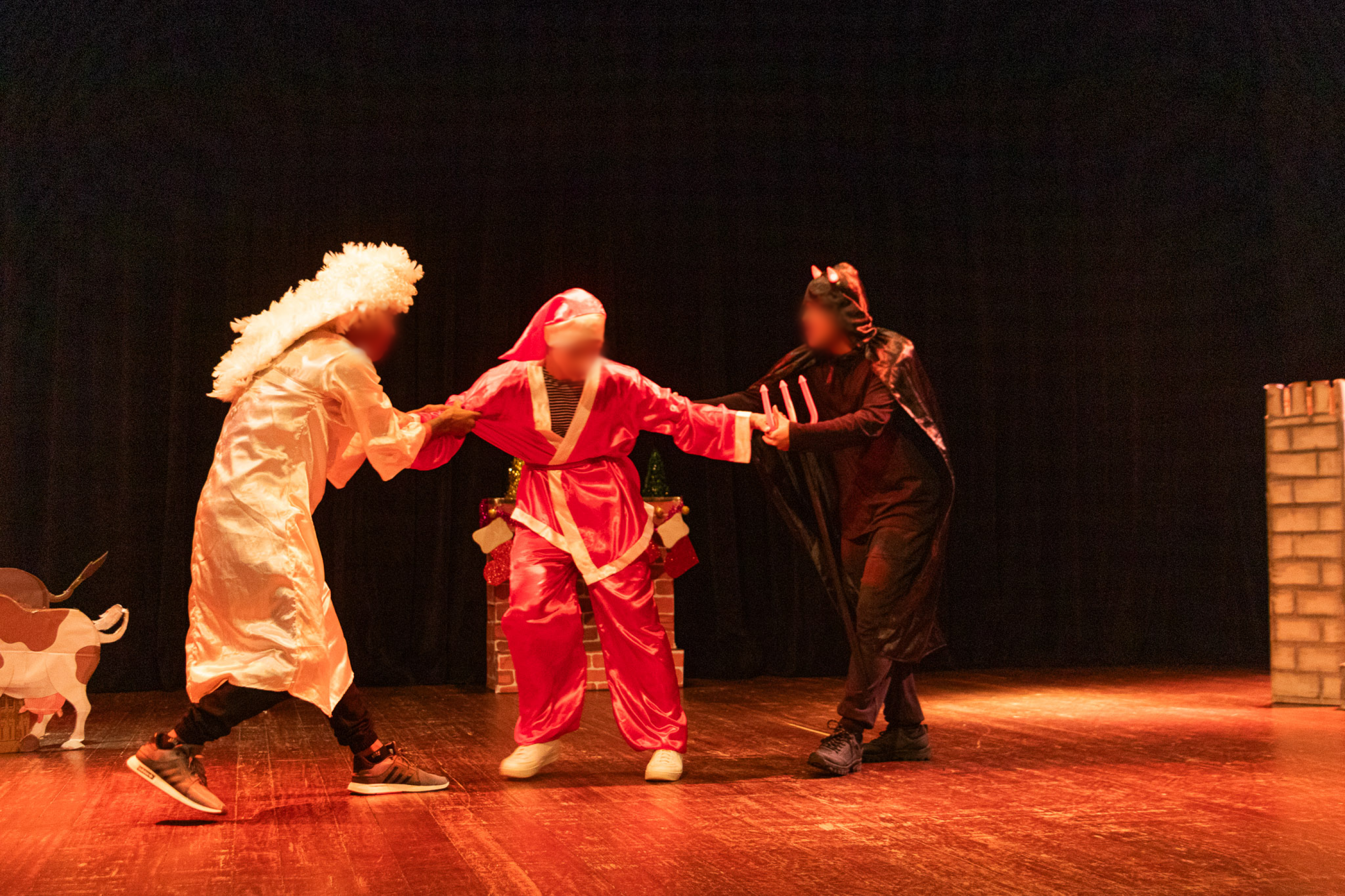 A plateia pôde assistir a uma encenação lúdica e bem-humorada que apresentou a família de Noel, um entregador de presentes que se vê em uma situação inusitada ao ouvir conselhos de um anjo e de um demônio sobre seu casamento, além de recontar a vitória do Menino Jesus sobre o rei Herodes.