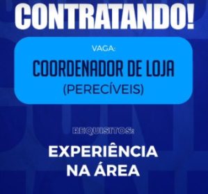 Desta vez, a vaga disponibilizada pelo supermercado é para o cargo de coordenador de loja (perecíveis). O interessado precisa ter experiência na área.