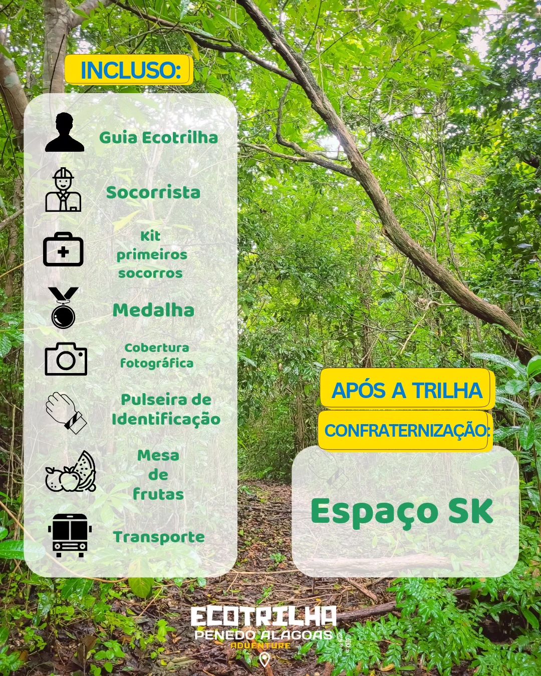 De acordo com os organizadores, os inscritos terão direito a mesa de frutas, guia ecotrilha, pulseira de identificação, medalha de participação, cobertura digital, transporte, kit de primeiros socorros e socorrista.