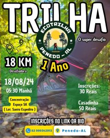 As inscrições para a ação do dia 18 de agosto já foram abertas. Ao todo, serão 18 km de percurso no nível “desafiador,” com saída às 5h30 do Espaço SK (ao lado do loteamento Santo Expedito – depois do Ifal).